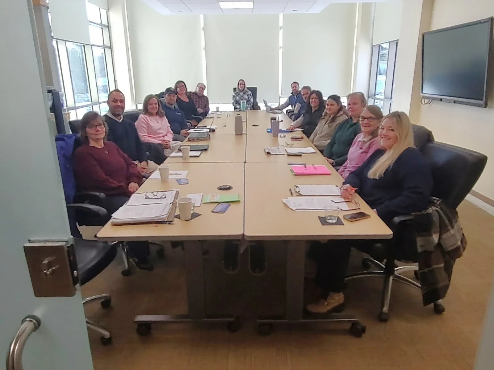 2023: Left to right: Linda Murray, Jeremiah Burke, Kathy Tetreault, Jeremy Roberge, Ryan Maran. Kate Lemay, Luke Freudenberg, Tiana Tocio, Daniel Mills, Jim McDevitt, Lynne Palmer, Jeff Sirles, Aaron Morrissey, Lucy Van Cleve, Sheila Chittum.